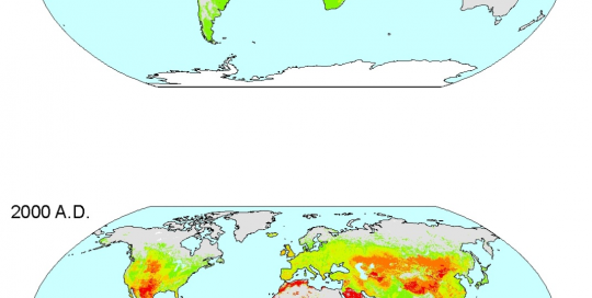 Historical Land Use Change Chapter 4, Figures admin2023-06-21T21:43:29+00:00 Figure 4.5. Map with land use in 1700 and 2000 (source: HYDE/PBL). Learn More